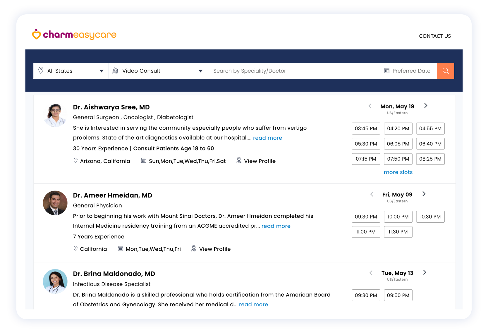 • Nursing staff at remote care centers, including skilled nursing and rehabilitation facilities, can initiate online consultations with healthcare providers through CharmHealth.