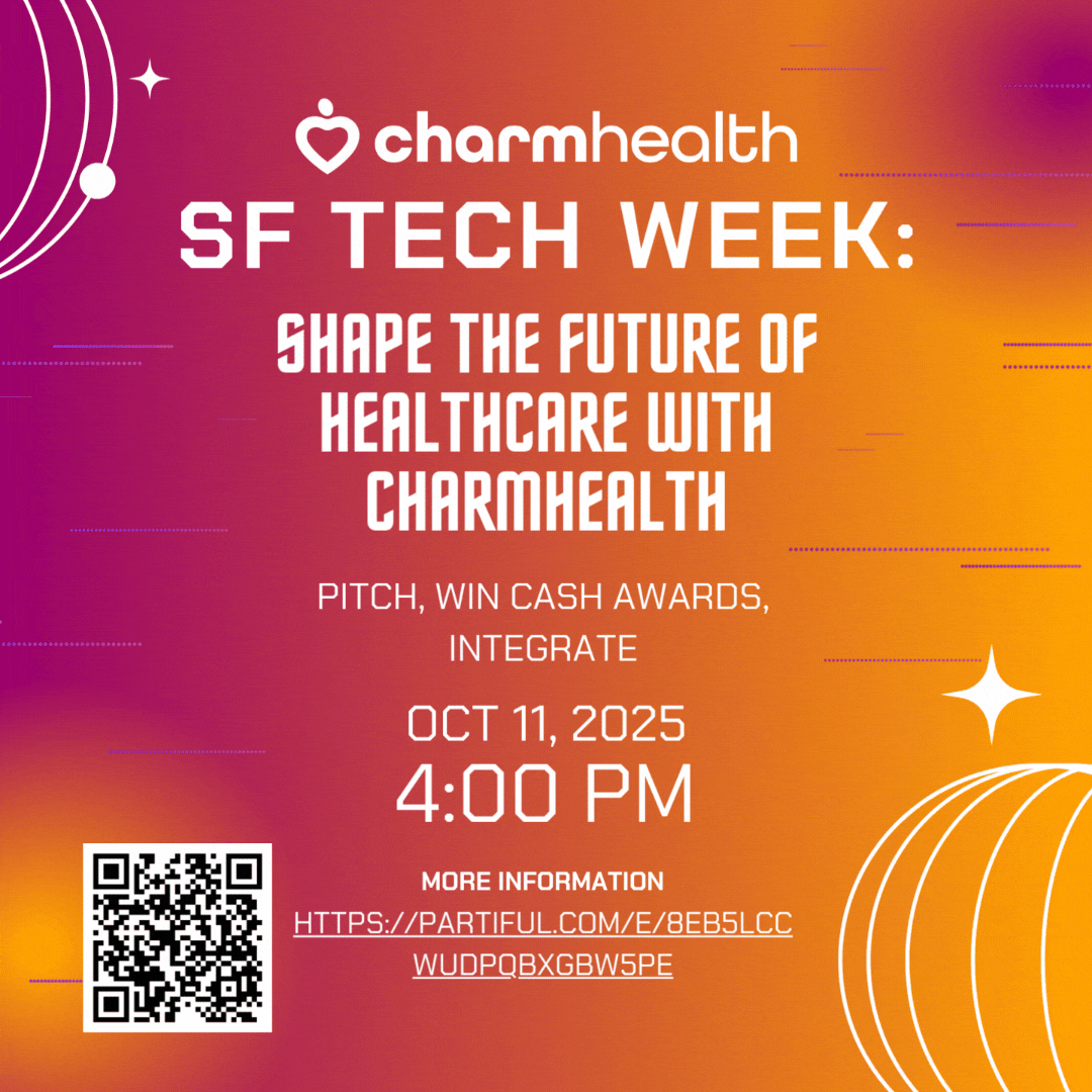 CharmHealth is hosting an Innovation Showcase at the SF Tech Week this year. Developers and entrepreneurs are welcome to join us on Saturday, October 11 at 4PM, to share their boldest ideas in mobile health, hardware accelerated AI, agentic AI, population health, and healthcare accessibility. We are always excited to see what's brewing in the health I.T. space and are looking foward to celebrating innovation, awarding top ideas with cash prizes, and inviting participants to the CharmHealth ecosystem.
